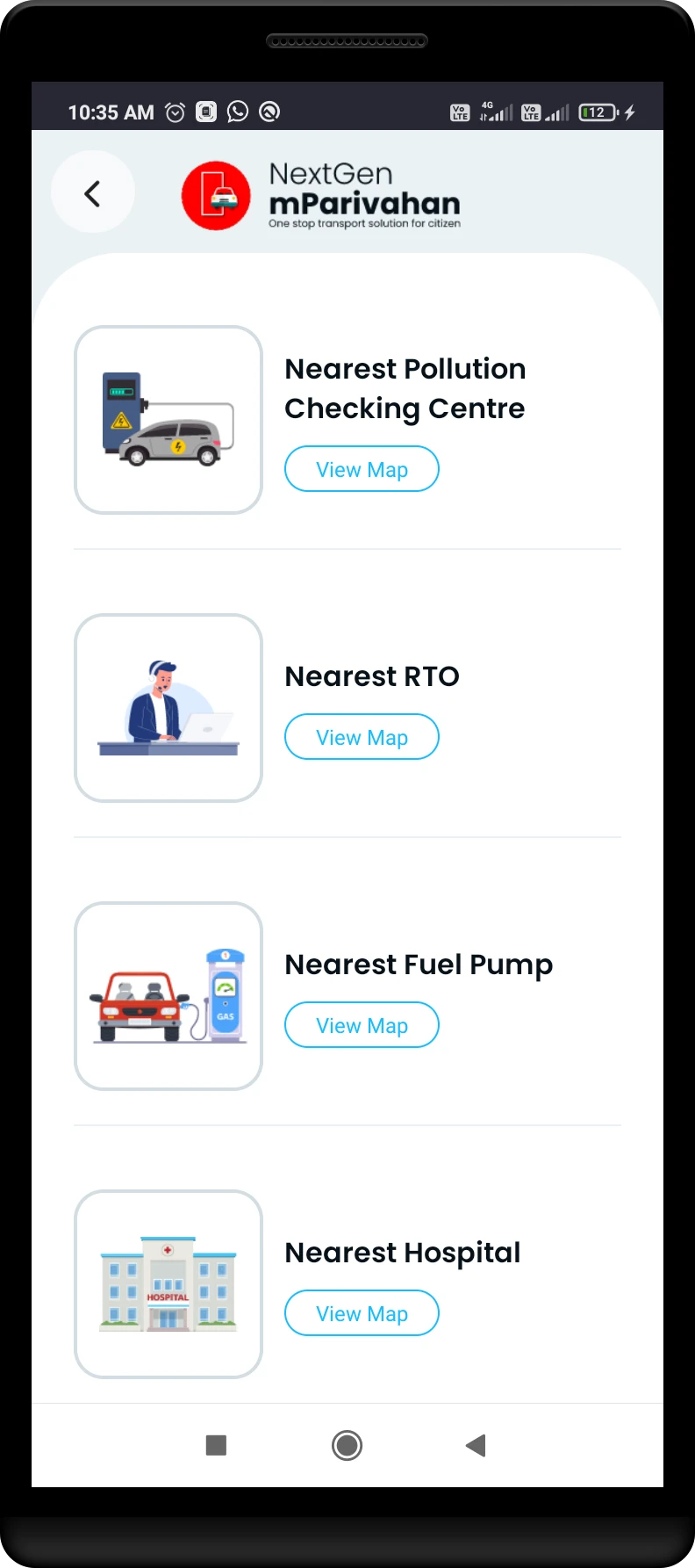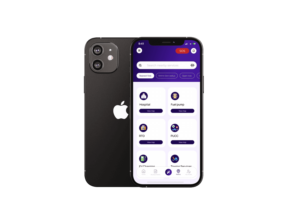 Newly added filter options help users quickly narrow down services like hospitals, fuel stations, or RTOs by distance or category