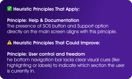 Following the Law of Proximity, related options are grouped for quick and intuitive navigation—key features at the top, settings and support at the bottom.