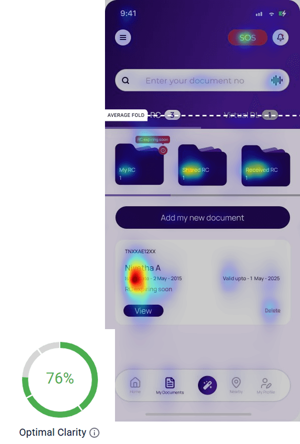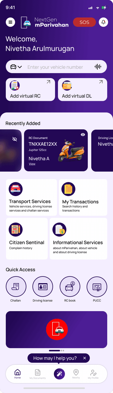 Users can instantly view their DL, RC, and other key documents in a carousel format, eliminating unnecessary navigation. With one-tap access, important details are always at their fingertips