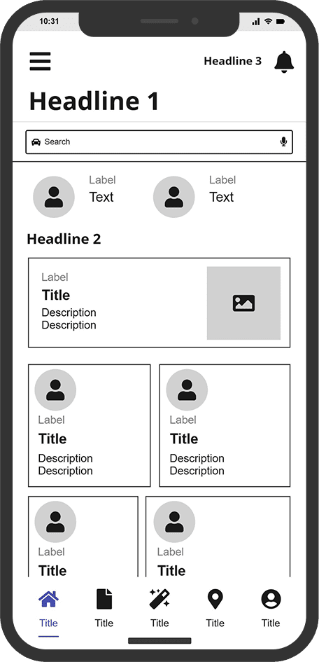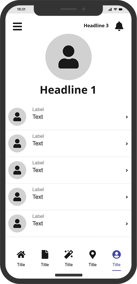Bottom nav shows active tab visually, with icons that match function.